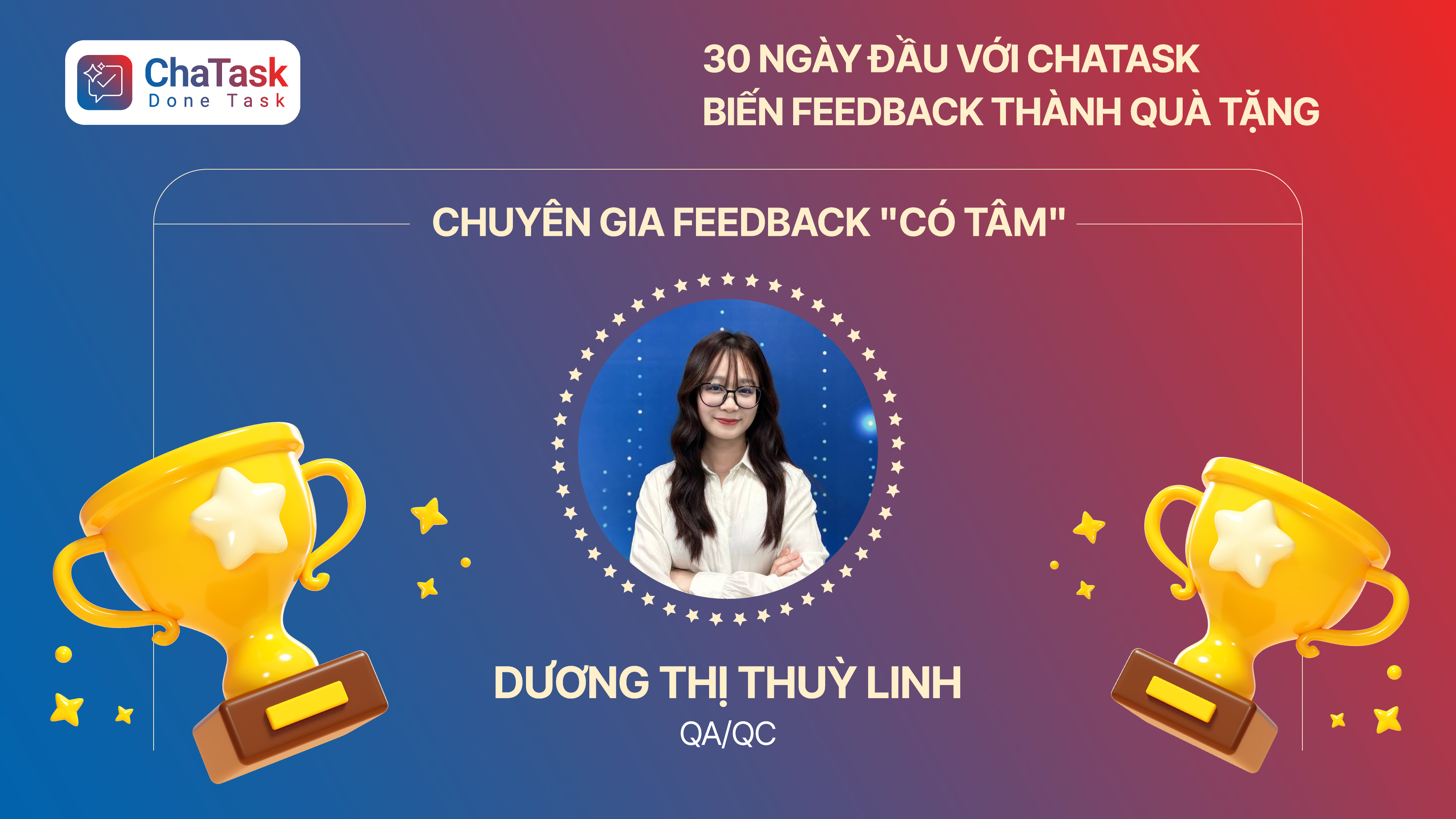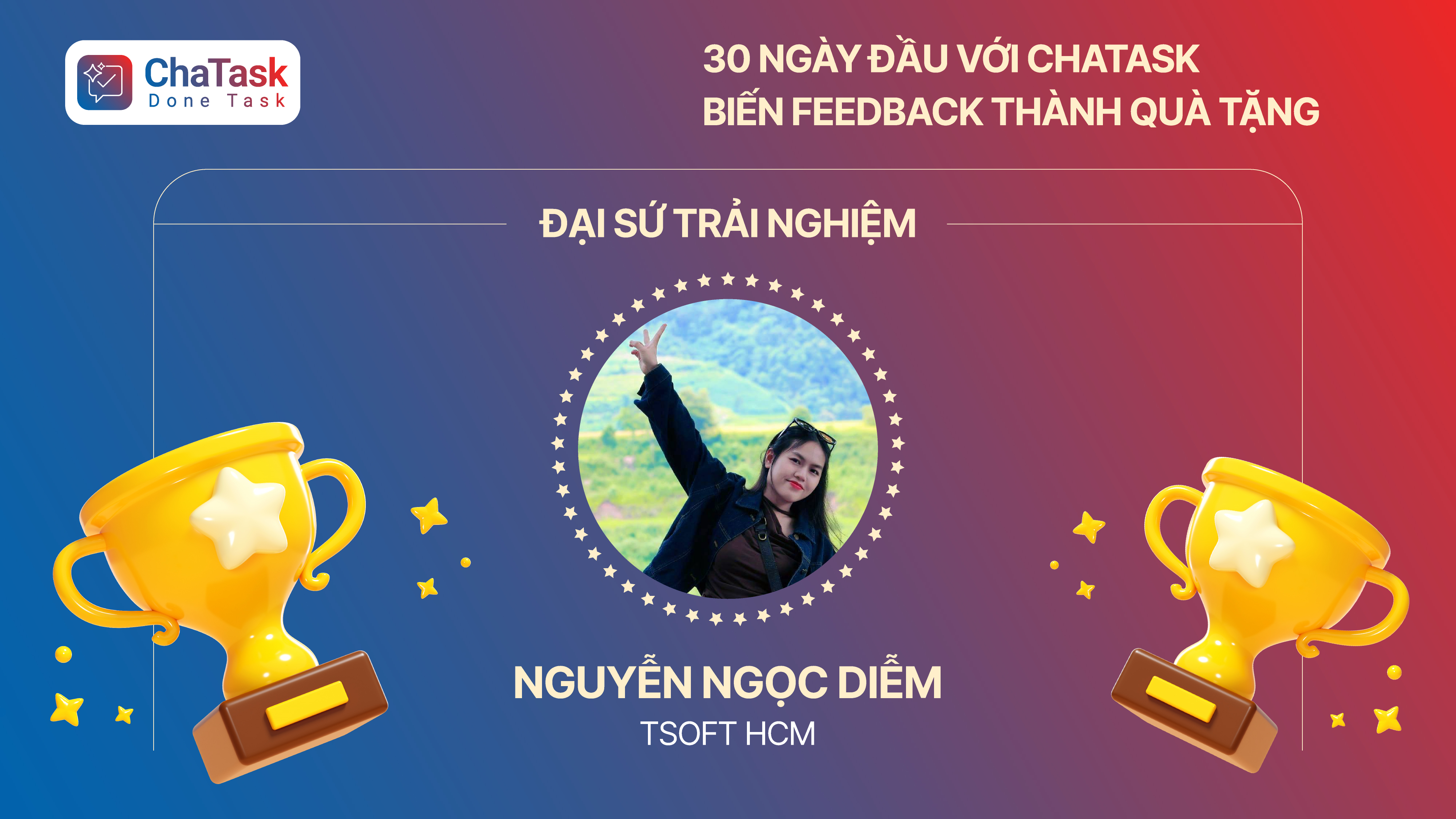 Giải Đại sứ trải nghiệm- Nguyễn Ngọc Diễm (TSOFT HCM): "Đại sứ trải nghiệm" với những góp ý tinh tế về giao diện và tính năng, mang lại sự mượt mà cho Chatask.