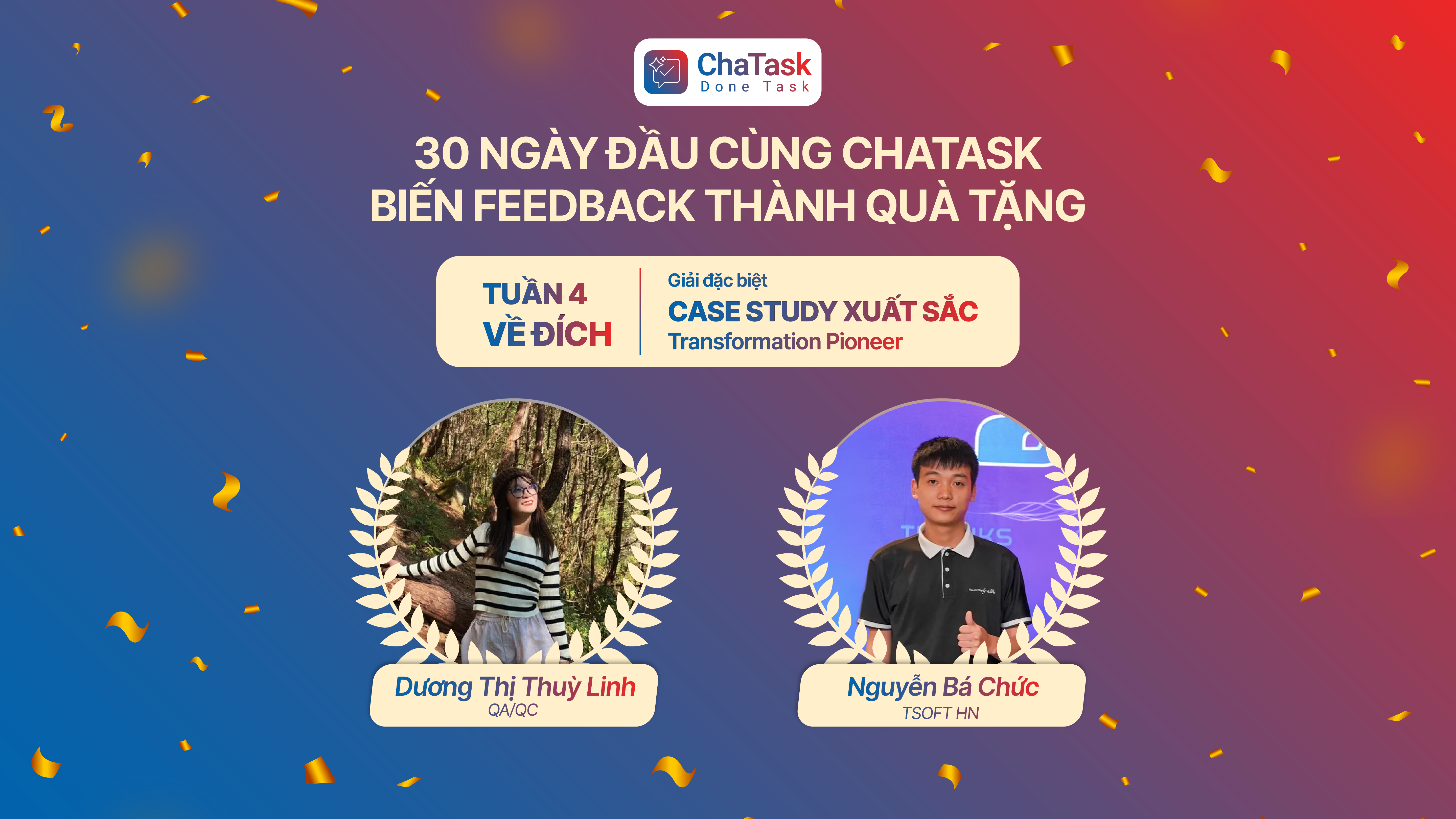 Trong tuần cuối này, Ban Tổ chức (BTC) đã tiếp nhận hàng loạt Feedback chuyên sâu cùng các Case Study giàu tính thực tiễn. Sau quá trình họp đánh giá và chấm điểm công tâm, BTC trân trọng vinh danh các cá nhân và tập thể xuất sắc đã dẫn đầu đường đua tuần 04: