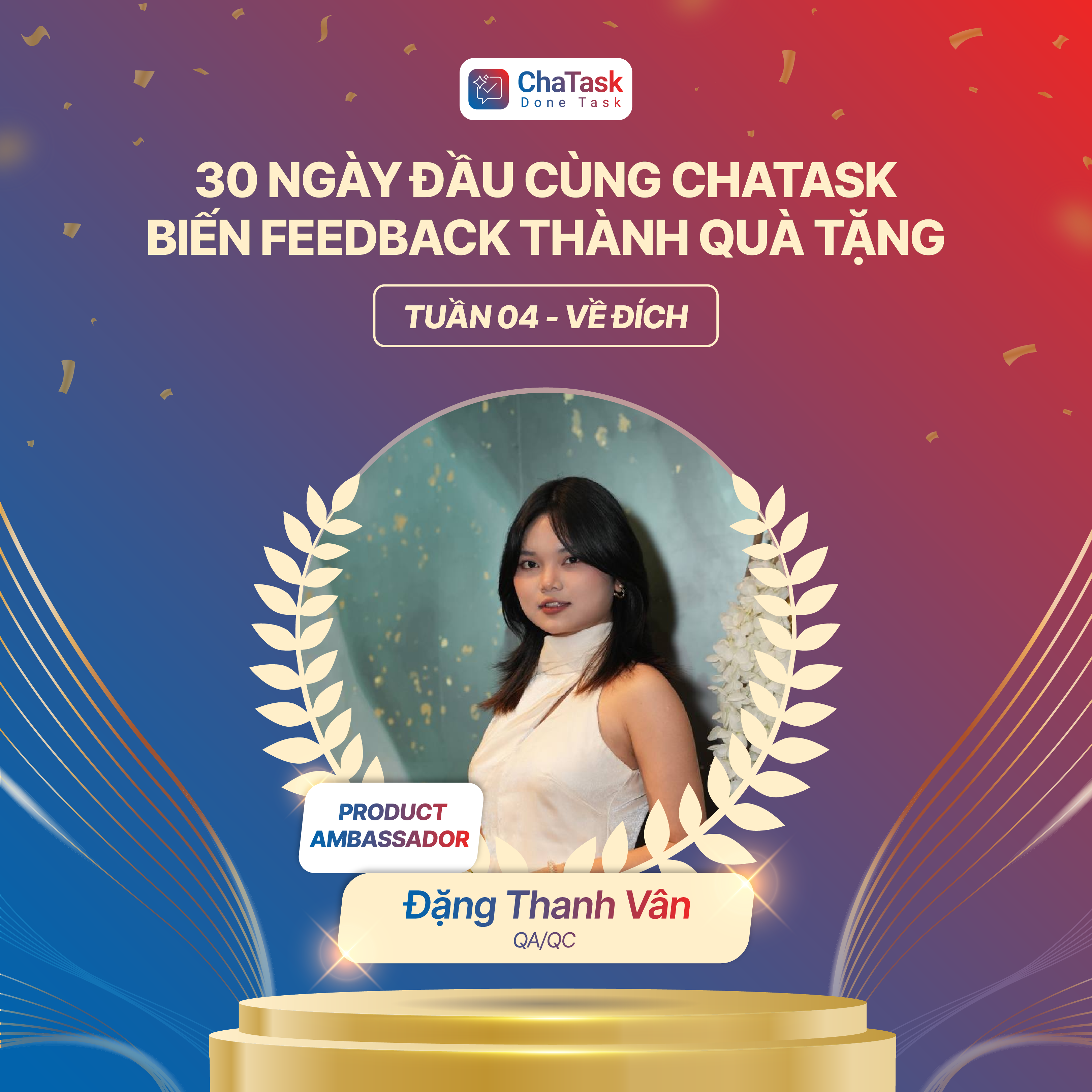 🥇 Product Ambassador: Đặng Thanh Vân (Bộ phận QAQC) – Người góp phần định hình trải nghiệm người dùng tối ưu.