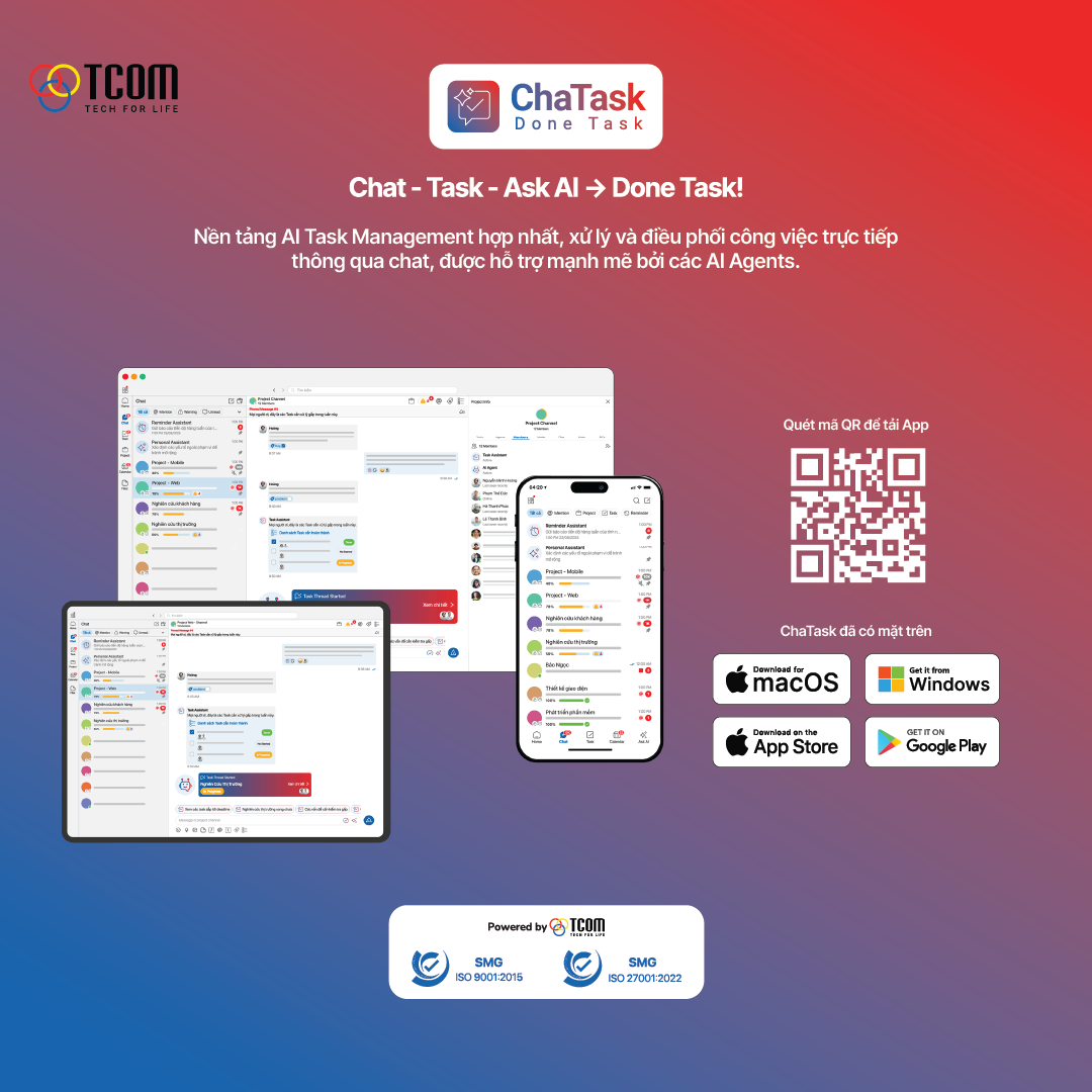 Thế giới công nghệ không chờ đợi bất kỳ ai. Để bắt nhịp với tốc độ phát triển thần tốc của kỷ nguyên AI, kể từ ngày 19/03, toàn bộ "ngôi nhà chung" của TCOM – nơi lưu chuyển dòng thông tin và vận hành dự án – chính thức dịch chuyển hoàn toàn sang nền tảng ChaTask.